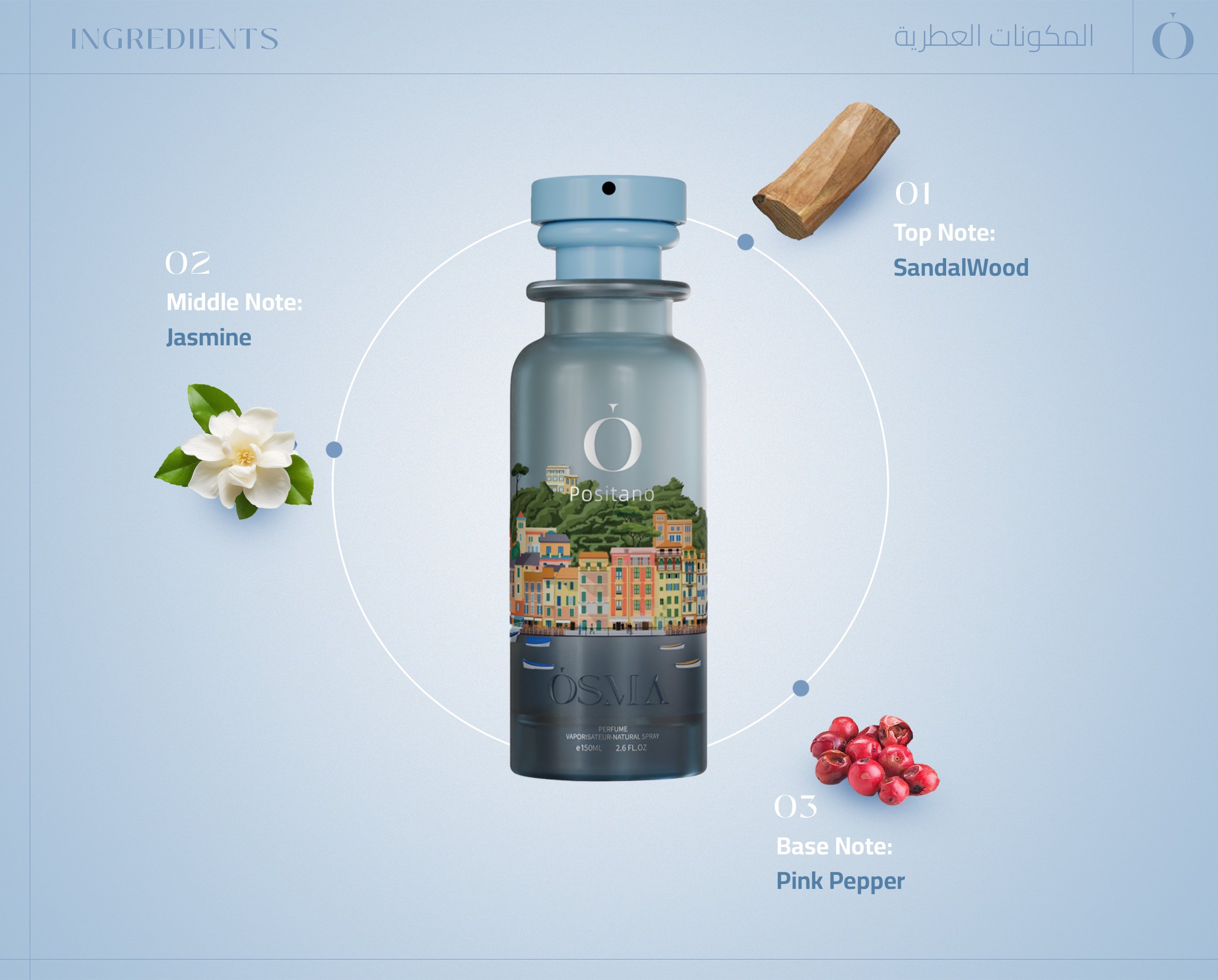 The elegant summer fragrance of Positano reflects the essence of summer with a spirit of freshness and clarity. It’s more than just a daily spray—it’s an experience that combines comfort and luxury, giving you a touch of elegance and tranquility that lasts all day.